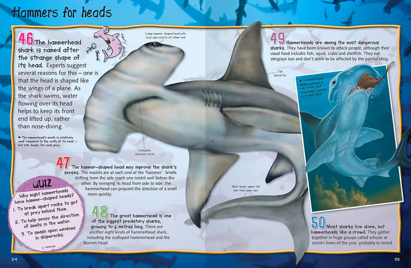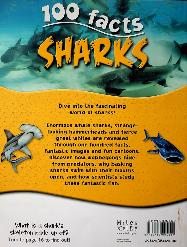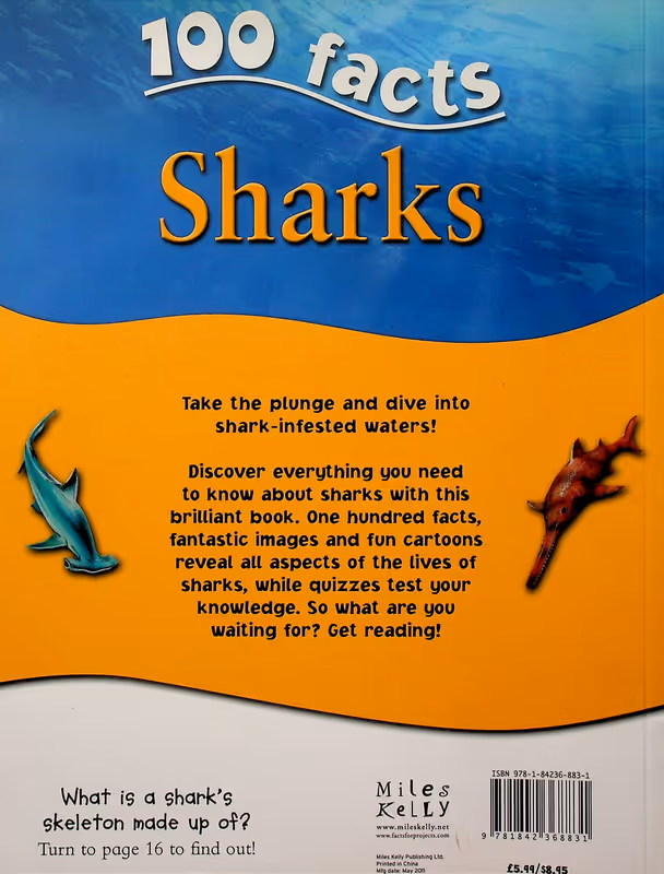 100 Facts Sharks is bursting with unbelievable images, fun activities and exactly 100 fascinating facts. Children will learn everything they need to know about these fascinating fish. 100 Facts Sharks covers key topics about this varied fish group in simple, exciting numbered facts for kids. Every page is covered in fantastic illustrations and photographs that support a child's understanding of the text. This exciting shark book for kids aged 7+ will amaze and enthral inquisitive minds. Essential topics covered in 100 Facts Sharks: - Hunting features that are designed to kill and the mating process - The world's biggest predatory fish - the great white shark - Strange shark species such as the goblin shark Examples of 'I don't believe it' fascinating facts: - The smallest sharks could lie curled up in your hand. The dwarf lanternshark is just 20 centimetres long! - The blind shark of Australia can see, but not very well. When it's caught, it closes its eyes so tightly that it appears to have none! - As the young of the sand tiger shark develop inside their mother, the bigger ones feed on the smaller ones! Activities to make learning accessible and interactive include: - Quiz question: How may gills do most sharks have - 5, 10 or 12? - Make a flying ray using stiff paper, coloured pens, a drinking straw and some modelling clay - Quiz question: Sharks can be tracked by satellite. True or false