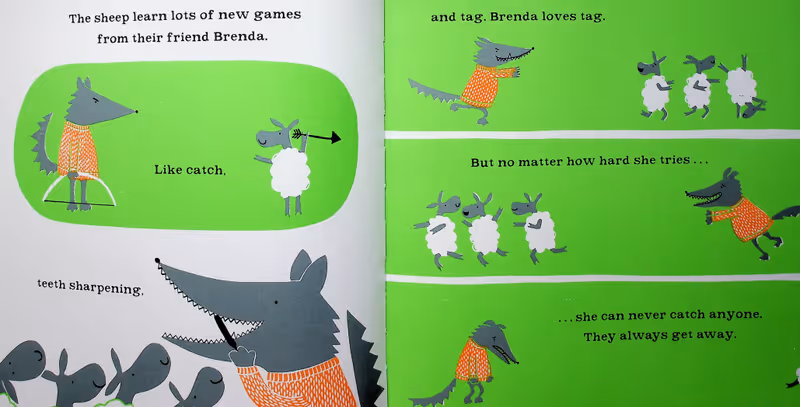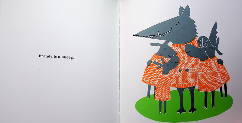 Brenda is exactly like all the other sheep. Well, except for the sharp teeth, gray fur, sharp claws, and orange sweater. All the sheep think that Brenda is just the best! Despite Brenda's best efforts to enjoy the ultimate sheep feast, Brenda realizes that she is, after all, a sheep. A funny reminder that what you look like doesn't dictate who you are.