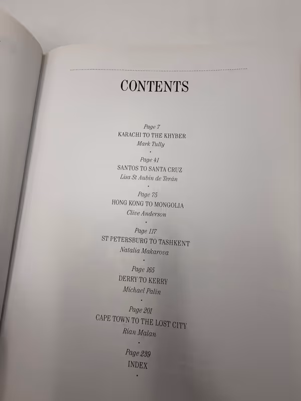 Tying in with a BBC2 series, this book comprises accounts of six international train adventures undertaken by well-known personalities. Chat-show host Clive Anderson travels from Hong Kong to Mongolia; ballerina Natalia Makarova from St Petersburg to Tashkent; anti-apartheid author Rian Malan from Cape Town to Bophutatswana; actor and former Monty Python man Michael Palin from Derry to Kerry; novelist Lisa St Aubin de Teran from Santos to Santa Cruz; and BBC reporter Mark Tully from Karachi to the Khyber Pass. By using rail as his or her means of transport, each author was able to meet the people of a continent and witness changing cultures on the journey.
