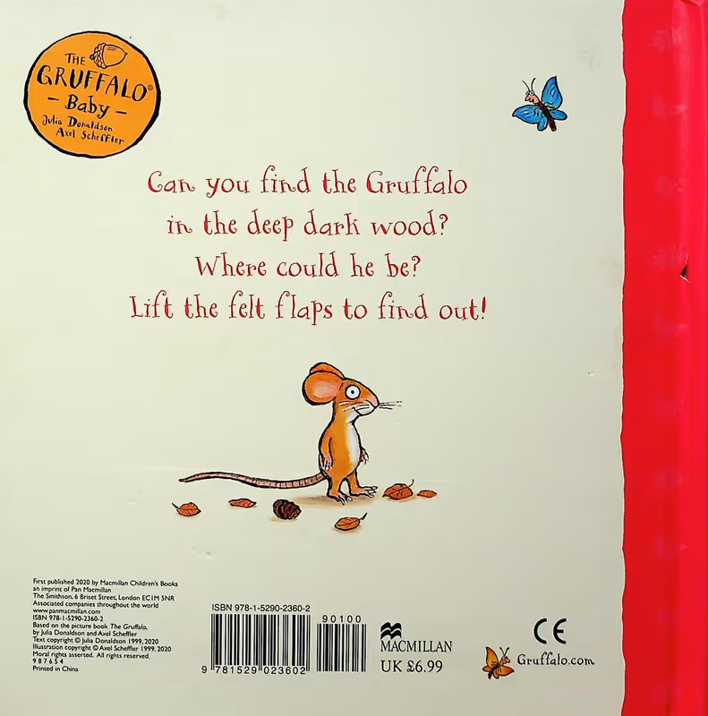 With soft fabric flaps which are easy to lift and help develop fine motor skills, this felt flaps book is perfect for sharing with babies. Designed to appeal to even the youngest child, simple patterns and bright colours combine with Axel Scheffler's instantly recognizable artwork to keep babies entertained for hours. Perfect for tiny Gruffalo fans, Gruffalo, Where Are You? is part of a charming range of books specially created for babies featuring Julia Donaldson and Axel Scheffler's iconic creation, the Gruffalo.