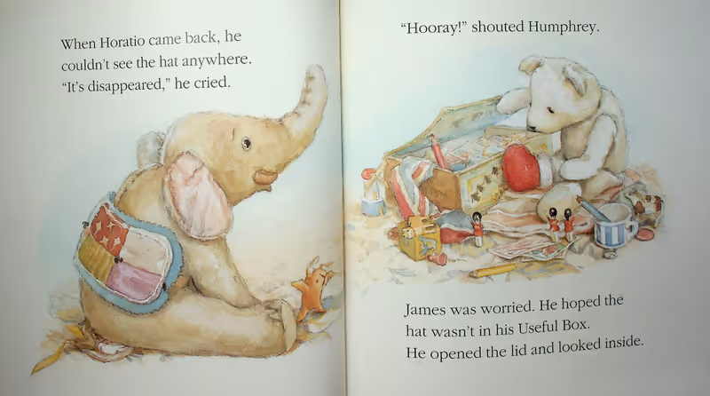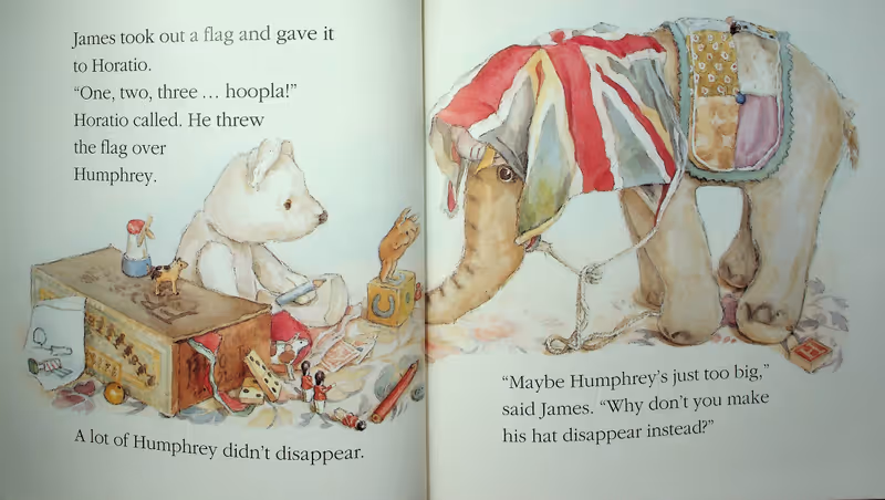 Horatio has learnt a new trick. By saying the magic word "hoopla!" and diving into his sock, he can make himself disappear. Humphrey Thud, the elephant, would like to do the trick too. But there is an awful lot of Humphrey to disappear - too much for a sock, as James points out. He does have an idea though and, as ever, it involves the contents of his precious Useful Box. This is Camilla Ashforth's fourth story about Horatio, the rabbit, and James, the bear, and the illustrations, make it full of the warmth and playfulness of the nursery. "Humphrey Thud", like the other picture books, "Horatio's Bed", "Monkey Tricks (shortlisted for the British Book Award's Illustrated Children's Book of the Year in 1993) and "Calamity", it features characters inspired by her own soft toy animals.