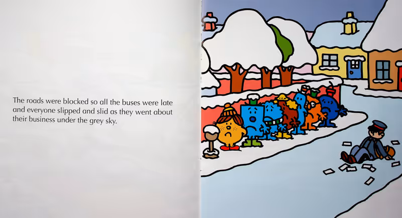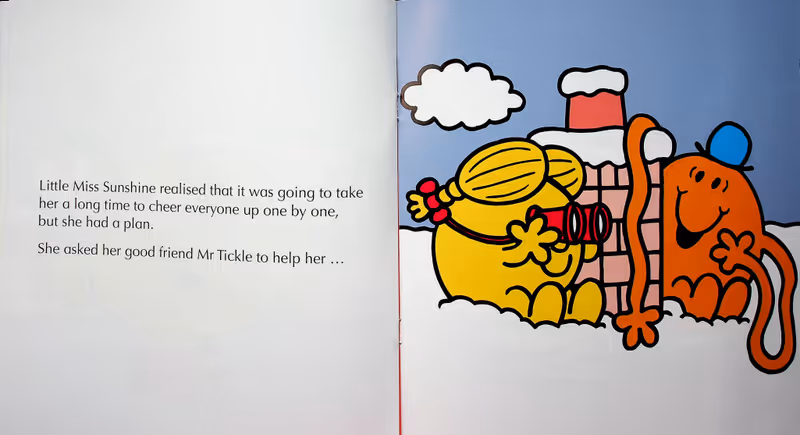 Everyone is fed up because it has been snowing for weeks, one snow covered winters day Little Miss Sunshine with the help of her friend Mr. Tickle help everyone have fun and enjoy the snow.