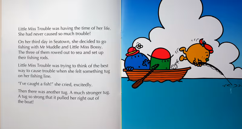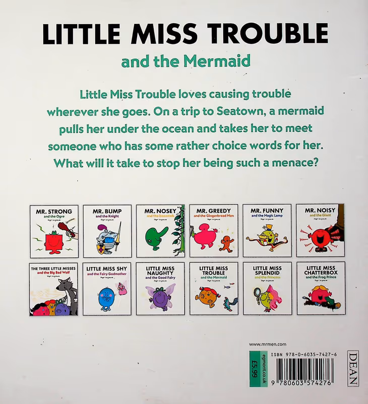 Little Miss Trouble likes causing trouble for her friends but one time The Mermaid Queen tells her to behave and puts a spell on her to make sure that she does.
