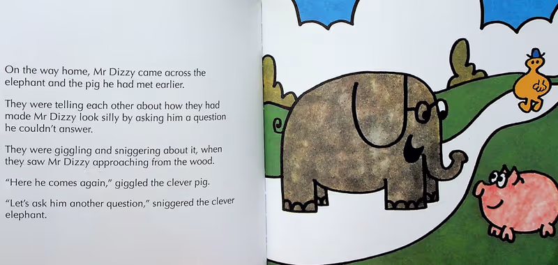 Mr. Dizzy always gets things confused until one day he happensupon a wishing well, and his dearest wish comes true!