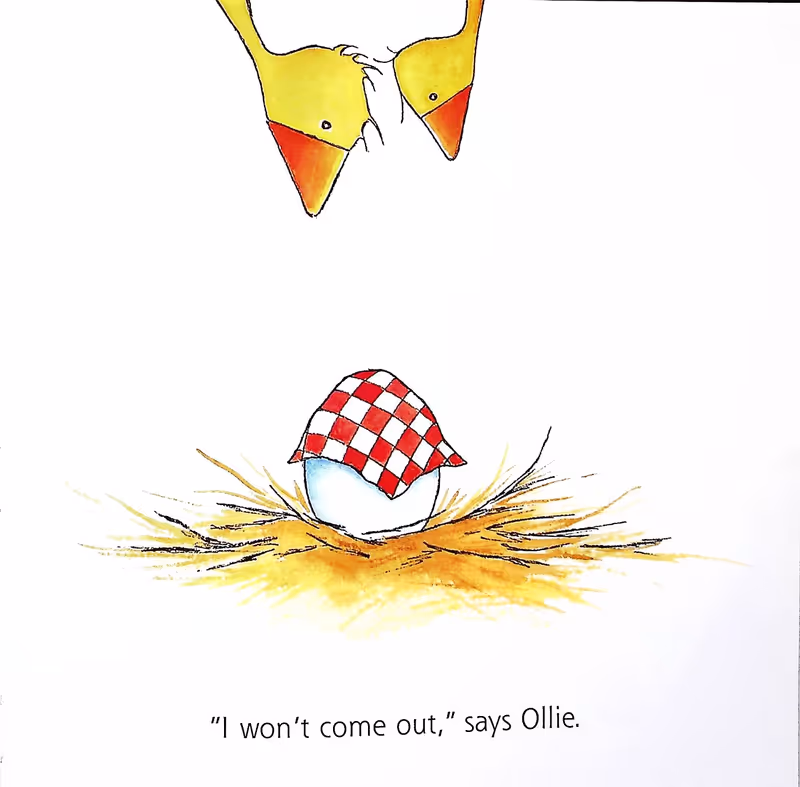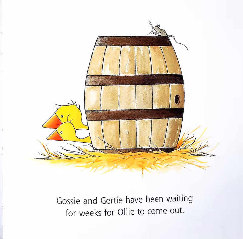 Gossie and Gertie are goslings. They are best friends. For weeks, they've been waiting for Ollie to come out of his egg. But, Ollie won't come out. So, Gossie and Gertie hatch a plan...