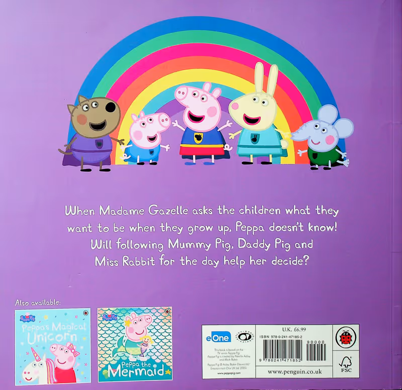 At Peppa’s preschool, Madame Gazelle asks the class to dress up as what they want to be when they’re older. Peppa has no idea what she wants to be, but whatever it is she is sure to be SUPER!