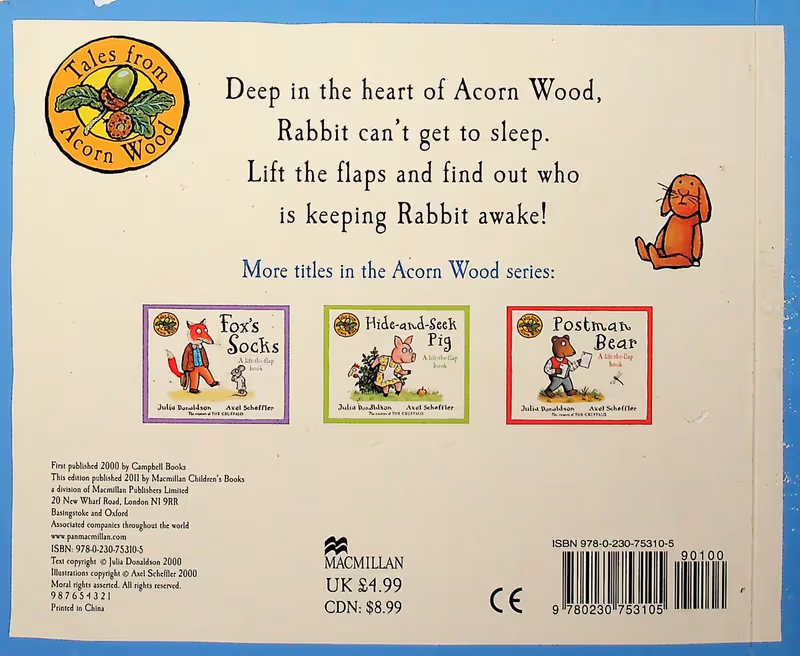 Rabbit is trying to get to sleep, but everyone is being so noisy. Lift the flaps and find out who is keeping Rabbit awake!
