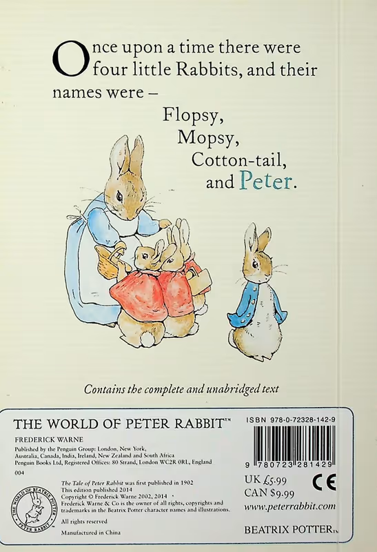 Beatrix Potter is regarded as one of the world's best-loved children's authors of all time. From her first book, The Tale of Peter Rabbit, published by Frederick Warne in 1902, she went on to create a series of stories based around animal characters including Mrs. Tiggy-winkle, Benjamin Bunny, Jemima Puddle-duck, Mr. Jeremy Fisher and Tom Kitten. Her humorous, lively tales and beautiful illustrations have become a natural part of childhood.