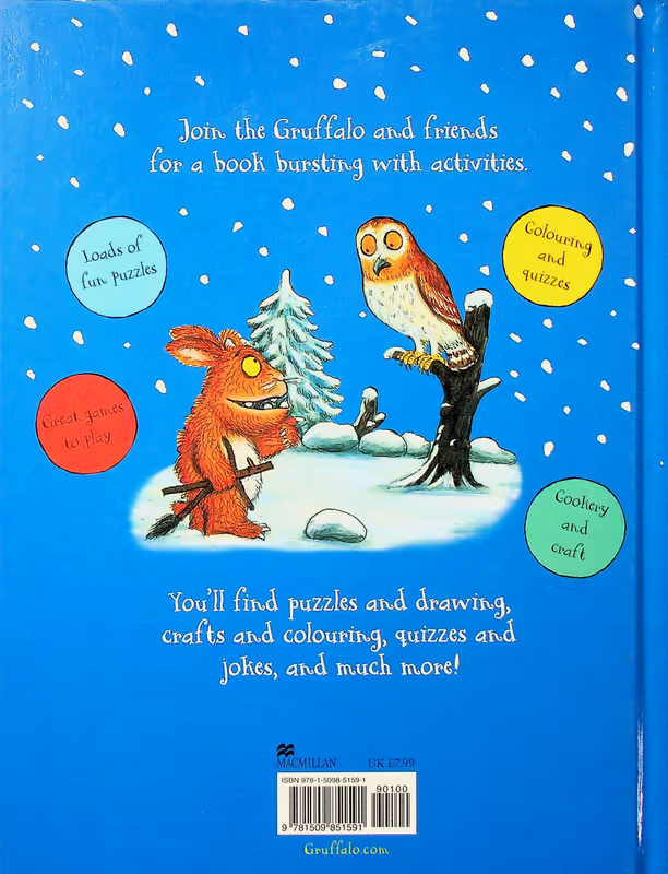 The official Gruffalo and Friends Annual 2018 is bursting with fun stories, perfect puzzles and amazing activities, featuring all your favourite characters by the incomparable pairing of Julia Donaldson and Axel Scheffler. With sixty-four pages filled with crafts, recipes, quizzes, games, drawing, writing and colouring-in, it's enough to keep children busy all year round! The 2018 annual features characters from the following classic The Gruffalo, The Gruffalo's Child, Room on the Broom, The Snail and the Whale, Charlie Cook's Favourite Book, A Squash and a Squeeze, Monkey Puzzle and The Smartest Giant in Town .