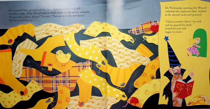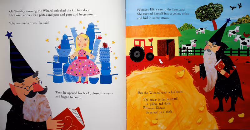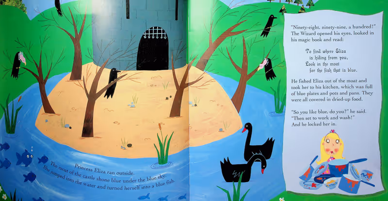 But each time Princess Eliza changes – into a blue fish, a yellow chick, a red fox or a black cat – the wicked wizard finds her and sets her another horrible task. Will this plucky princess be able to outwit him and escape back to the palace in time to cut her birthday cake?