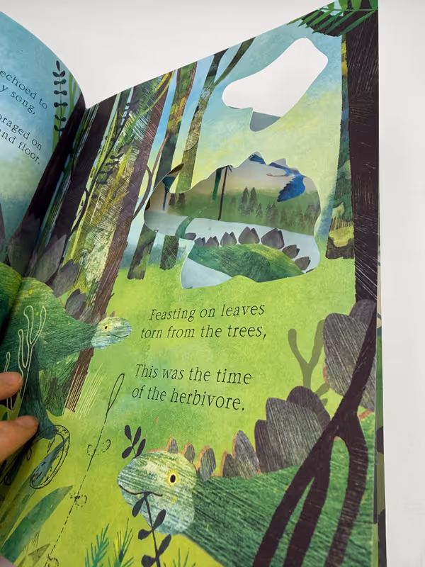 This beautiful die-cut book takes a journey back through time to discover a world where the land, skies and seas were ruled by the dinosaurs