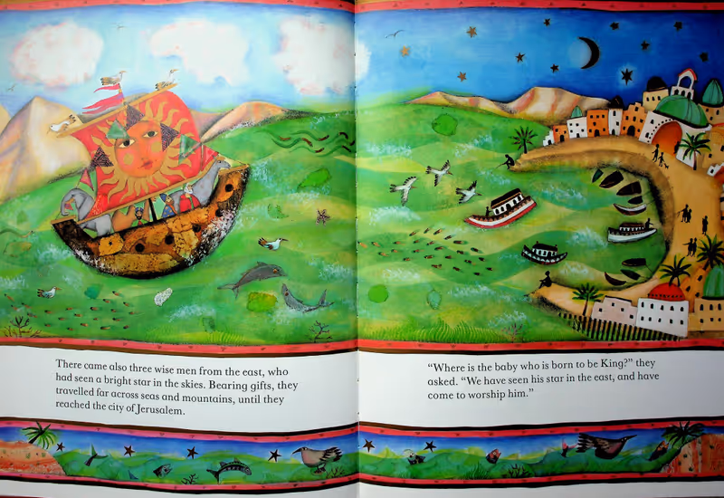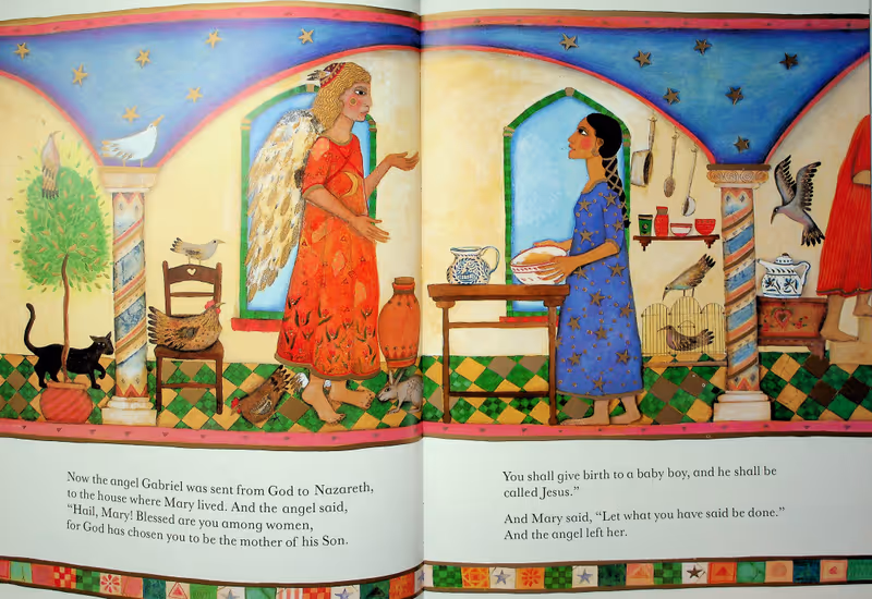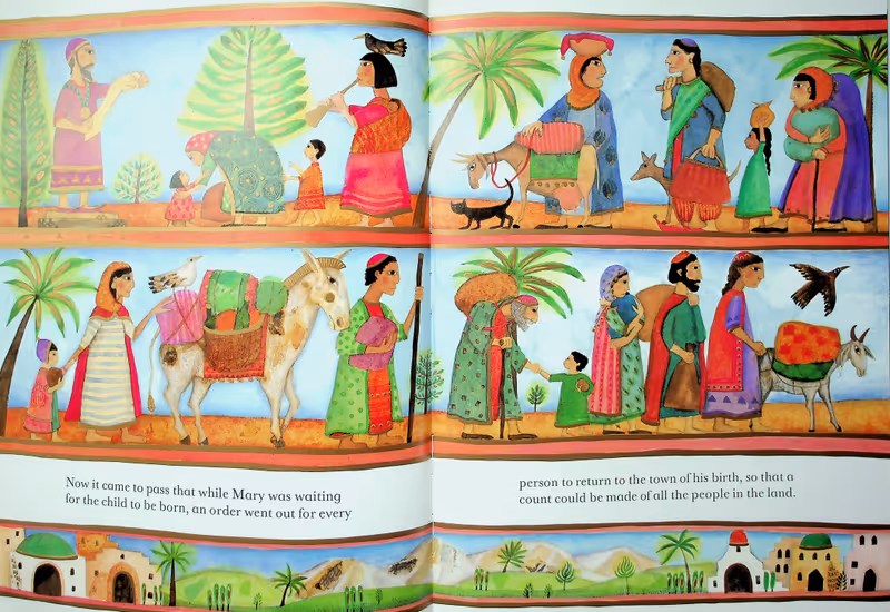 Here is the story of Christmas, adapted from the Gospels of Matthew and Luke and gloriously illustrated in a splendor of jeweled color by the remarkable folk painter Jane Ray. Borrowing shapes and patterns from ancient and modern folk art, the illustrations feature generous spreads filled with cunning details. Full color throughout.