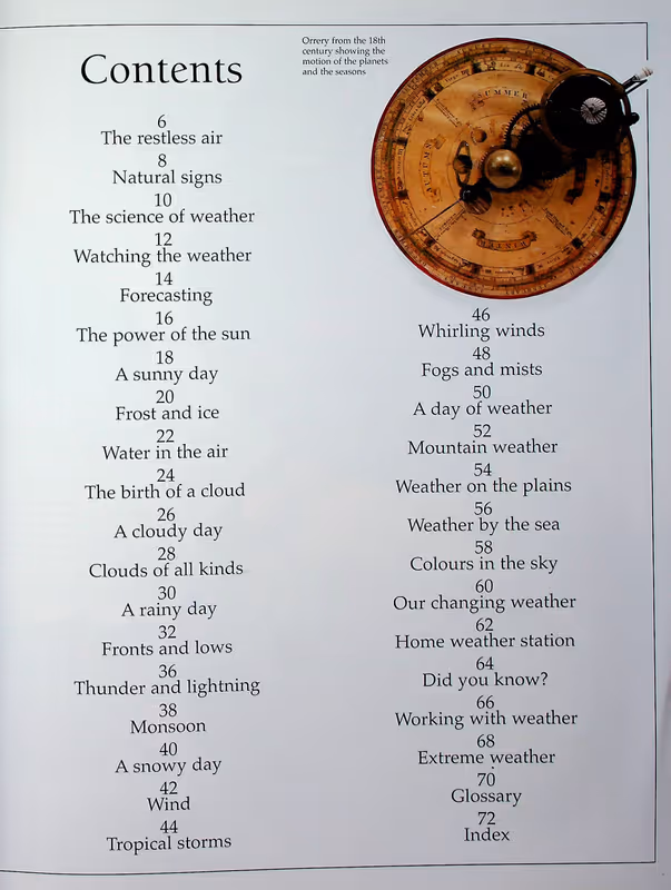 Superb color photographs of the sky in all kinds of weather conditions, together with specially built 3-D models, offer a unique and revealing view of weather, from calm summer days to the bitter storms of winter. Discover why deserts are dry, how clouds are born, what makes raindrops grow. Learn how to make your own forecast and how humans have learned to predict and use the weather to their advantage over the years.
