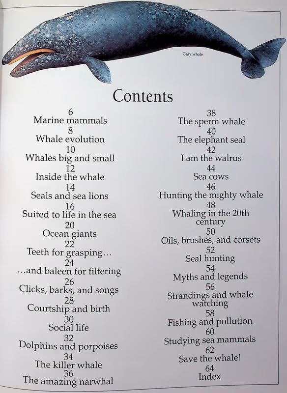 One of a series of reference books which is intended as a reference source on the whale and dolphin. The photographs in this book are based on real-life objects shown in close-up detail, mixed with illustrations and integrated text designed to make them accessible at a glance to young readers.