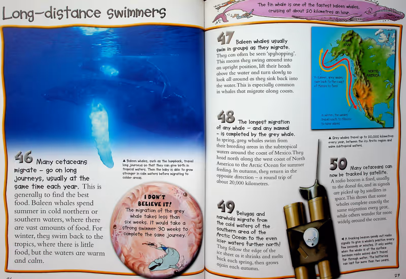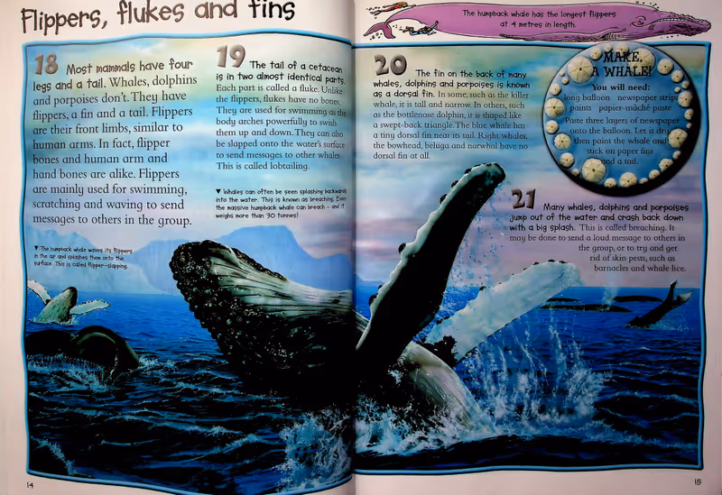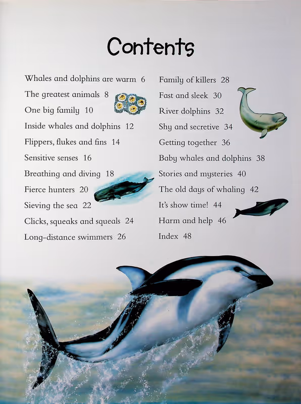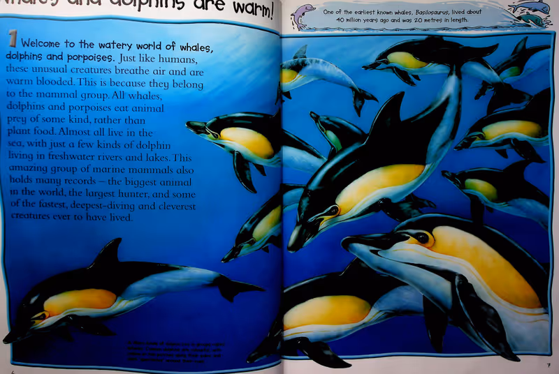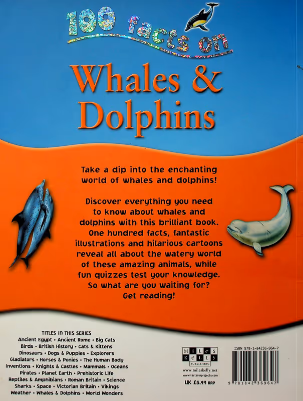 100 Facts Whales and Dolphins is a fascinating illustrated children's book for 7-10 year olds. Find out stunning detail about many species from the massive humpback to the deadly killer whale. Children can discover how dolphins use sound to find their prey, which whale can hold its breath for more than two hours and why river dolphins have become endangered. All of this is explored through 100 numbered facts, which will challenge children and act as an incentive as they make their way through the book. Packed with realistic artwork and photographs, and featuring fun panels with activities, quizzes and cartoons, 100 Facts Whales and Dolphins is the perfect introduction to this fascinating topic. Topics covered: Marine mammals, One big family, Inside whales and dolphins, Flippers, flukes and fins, Sensitive senses, Breathing and diving, Fierce hunters, Sieving the sea, Clicks, squeaks and squeals, Long-distance swimmers, Family of killers, Fast and sleek, River dolphins, Shy and secretive, Getting together, Whale and dolphin babies, Stories and mysteries, The old days of whaling, Working with people, Harm and help.